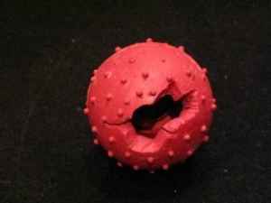 tongue into the hole in the ball. From speaking with my vet , this likely occurred