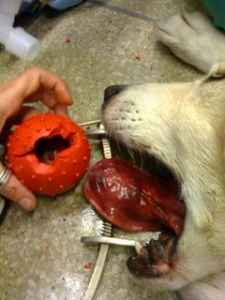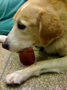 dog. Fortunately, they were able to pull it off before the tongue swelled, but not
