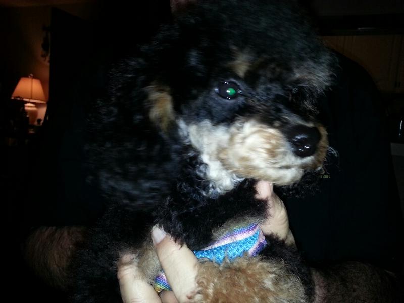 Andy is doing wonderful! We named him Andy Doodle Dandy, and it fits him perfectly! He and Phoebe, our chihuahua, are best friends and are sleeping next to each other against my hip right now :) We have taken the two of them back to the coast a few times and they LOVED running on the beach together chasing the tides. Andy and my husband cuddle together on the couch during the day, and the kids are in love with him too. As for me, I couldnt be happier! He's a joy to have, perfect for grooming, and a wodnerful addition to our family! Thank you so much for such a great memeber of our family!