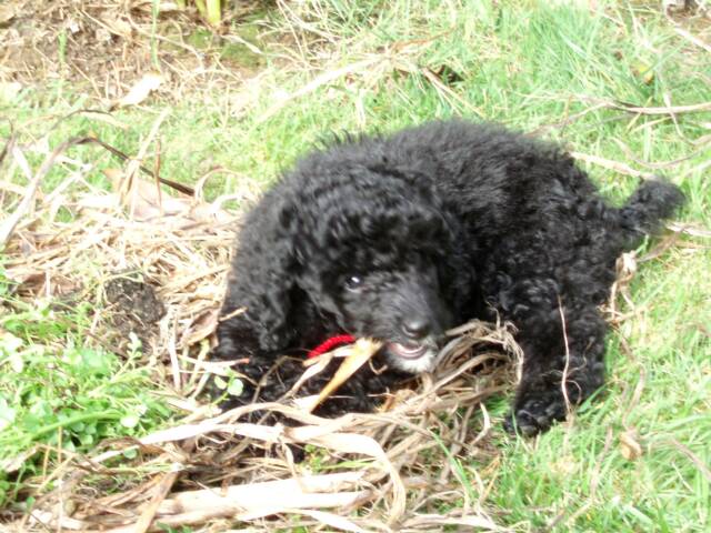 We have named him Bodhi [Boe-dee] and he pretty much comes when he is called. He is VERY smart. It took him about 2 days to be potty trained using the method in the book you gave us. We really appreciated that book. He has his own little crate and is doing GREAT.