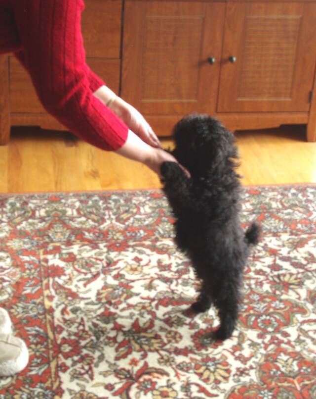 Baby Jack is working on crate training; his potty training is very easy. NO house potties. He has only wee and pooped outside. I keep him on a feeding and potty schedule and he takes to it so fast and easy. He is extremely playful and just a love. He is exactly what you said – I couldn’t be happier. He loves to follow me and stays very close to my feet. He is sleeping in the kennel cab right next to my pillow every night. He has slept through the night really well. He is ready for a potty break about 3 am to 4 am. He just bounces around the lawn. It is darling to watch him – I am just in love. We had our first walk yesterday and I carried him the entire time. He loved being outdoors, seeing the other dogs, and meeting the neighbors. He is eating and drinking just wonderful.